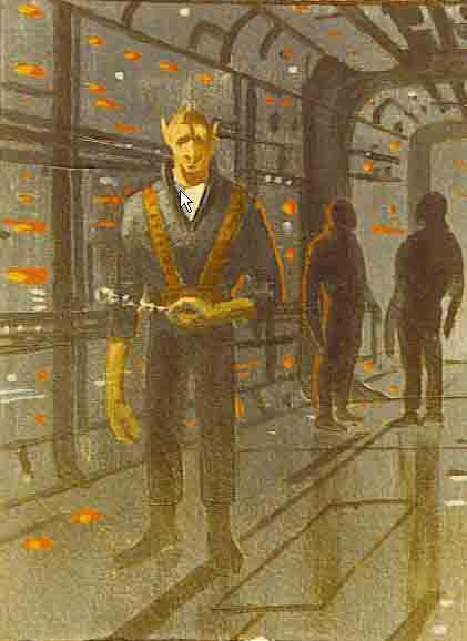 They stood on the platform and, with one hand against their ball-shaped helmets at about the height where their foreheads would be, made slow, respectful bowing movements in my direction. I understood. What a relief. It was a greeting, a friendly, respectful greeting. With quick, short paces they walked to the edge of the platform, where the bowing was repeated and emphasized, and then they stood like statues in the light of my flashlight. A strange and dramatic scene; on the Oosterscheldt a man is confronted with an alien intelligence. But the man was poorly prepared for the meeting; he was nothing more than a sailor in difficulty who could feel his legs trembling in his wet clothes. The two figures in front of me were about five feet tall and from a distance looked deceptively human-arms, head and legs, all in their proper places-but their legs were shorter than ours so that their arms reached down to their knees. Their metallic costumes were smooth and seamless. Only by the shoulders and elbows were folds to be seen. The short, heavy legs ended in broad feet that also stuck out behind, and the front part of their footwear was split in the middle. The hands were covered by supple, ribbed gloves; these were different from ours too in that not only the thumb but also the second finger was enclosed. They were heavy, clawlike hands.