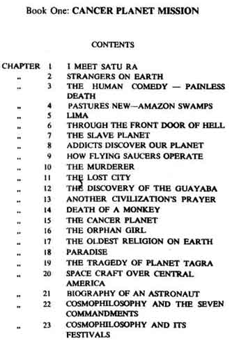 “La Tierra, Satu Ra me aseguró con suavidad, se consideró que era un planeta subdesarrollado, con una especie de humanidad belicista, tratando de mantener estándares muy por debajo de los de la civilización cósmica media. La autoridad suprema del anillo cósmico había decidido mantener un ojo vigilante en las travesuras de la Tierra, esperando el momento oportuno hasta el momento justo cuando por proceso evolutivo, la Tierra hubiera llegado a una etapa en su desarrollo cuando pudiera haber sido admitida en plena colaboración en el anillo cósmico”.