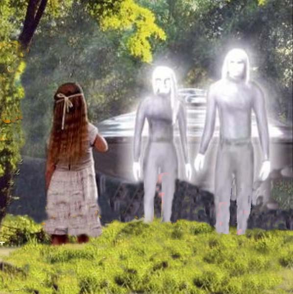 En natt i okt. 95? - våkner Liv av et forferdelig "leven" - og hun tror det er innbrudd i huset. Hun ser så at gangdøren er åpen og at det lyser der - hvilket det slett ikke "skulle". Hun lurte på hvordan tyvene var kommet inn men frykten gikk over til raseri. Ute i gangen så hun at kjellerdøren sto åpen - Liv forsto intet - "for jeg låser jo alltid". Hun hørte samtidig en merkelig summelyd. (Noe tilsvarende er beskrevet i SØREN B.s kontakter - han fikk også uanmeldt besøk på sitt soverom - se link til slutt). Men hun vil ta dem på fersken - går inn i sin stue - og der er alt på plass…..som vanlig. Intet er knust eller brutt opp og ødelagt, men så tenker hun at de må være i kjelleren... Men heller ingen der. Så ringer hun til lensmannen som ber henne se etter spor i nysnøen, det hadde nettopp snødd. Hun ser ut - men ser ingen spor! En betjent ankommer og de ser over hele huset - men intet unaturlig å se. Hadde det ikke vært for at disse dørene sto åpne, samt lysene på - ville hun tro det hele kunne vært en drøm i ettertid, men.... *** Den 12 okt 1997 – ca halv ni på kvelden - ser Liv flere lysende kuler over frostrøken som lå lavt over Randsfjorden, og etter å ha sett på dem en stund ringer hun til en nabo - Wenche Langbråten - som sammen med mannen og andre i huset - så det samme som referert under. Men før hun ringte sier Liv at en av kulene på et øyeblikk suste helt inn til hennes hus slik at hun på helt nært hold kunne se at det faktisk dreide seg om en "ufo" - med vinduer rundt det hele - men litt skuffet kunne hun ikke se noen vesener "der inne". Ja - hun sier hun kunne se gjennom hele skipet og ut på den andre siden gjennom vindusrekken i periferien av skipet…..det var et knallgult lys inne fra skipet (eller gule vegger…) sier Liv og merkelig tynne "vinduslister" mellom vinduene. Hun sier også på intervjuet at hun i ettertid fant ut at den må ha vært i en avstand på 18 meter fra huset. Hun går ut på terrassen og peker der månen sto på det aktuelle tidspunkt og hvor fartøyet var i forhold til noen trær som "den gang var en del mindre enn i dag". bildet er et forsøk på å gjenskape hennes (og to naboers-)opplevelse - her med Liv er ute på terassen og peker mot fartøyene - mens de små lyskulene "svirret" hit og dit med voldsom hastighet - noen ganger nede i tåka over Randsfjorden - og da skinte de i regnbuens farger. De to store var i ro over - men på et tidspunkt fløy det ene lynhurtig og plasserte seg rett utenfor vinduet til Liv - se bildet lenger ned. Da skipet for opp igjen sier hun det virket som et stort hjul og det blinket. Og hun ringte da til en journalist i lokalradioen - RANDSFJORDEN RUNDT (Bjørn Ivar Rudsengen) - som hun hadde lovt å kontakte "neste gang hun så noe" - og han + flere andre der - kunne se objektene. Se under. Tidlig på høsten -97 ble Liv "av noe" inspirert til å fortelle om alle sine merkelige opplevelser på denne lokalradioen og det ble et program på en hel time - som fikk så stor tilbakemelding i ettertid at det ble sendt i reprise senere. bildet: Liv peker og viser hvor nære fartøyet var og beskriver at det var merkelig at hun ikke så noen inne i skipet - bare det sterke gule lyset og de tynne lister mellom vinduene. Et spes. lys på venstre side la hun merke til. Det var dog mye mørkere under "møtet" og også en annen årstid. Bildemix av RuneØ Opplevelsen 4-8-00(som beskrives et sidetrykk lenger nede) var også med sterke LYS inne i den samme have som på bildet over - og noen trær var tydelig misfarvet etter fenomenets nærvær som hun også tok bilder av midt i forfjamselsen. Ja, da jeg besøkte liv for å gjøre dette intervjuet noen uker senere kunne jeg selv se misfargete trær- men kan ikke si de var direkte "brent" - men muligvis "bestrålet". Den 4.august 2000 - ca. kl.20.30 skulle Liv se noe på tv'n - men den virket ikke, og derfor ville hun hente et lite reise-tv på gjesterommet. (senere virket tv'n helt som vanlig). Der inne åpner hun gardinen og ser med ett noen merkelige lys utenfor huset! Det var jo enda ikke mørkt ute på denne tid av året. Først tror hun det er kvelds-solen, men innser at retningen er feil og fargen er jo "en slags stygg gulfarge" på den første lysskiven - flere med andre farger dukker opp etterhvert. Men hun har åndsnærværelse nok til å tenke på å ta noen bilder av lyskulene eller skivene som hun kaller dem - hun har et polaroidkamera liggende og med det tar hun bilder….et av bildene viser faktisk et sterkt lysende "noe". Det kan jo minne om et vanlig motlysbilde - med en "stygg" gulfarge slik hun selv bedømmer det. Senere ringer hun og sier hun har lagt merke til at det det også finnes to mindre "blomkållignende lys" over det området som i ettertiden var nærmest "svidd". Hun har også et annet polaroidbilde er av det lilla objektet som ble sterkt undereksponert av noen årsak hun ikke forstår.… Hun var sterkt oppskaket etter hendelen - noe jeg merket da hun nådde meg på mobiltelefonen noen dager senere. Hun hadde ellers forgjeves forsøkt å ringe mange hun kjente og også sol-observatoriet på Harestua som ligger i nærheten. Ingen hadde sett noe unaturlig denne dagen - så spørsmålet er om det var så lokalt at det faktisk bare "skjedde" rett utenfor som hun beskriver. Etter episoden oppdaget hun at et tre og noen busker var som svidd eller brent og hun ble selv "brent" i huden etter dette møtet forteller hun - ja, selv mener hun at noen av buskene i haven hennes som tydelig er misfarget - er blitt "radioaktive" som hun uttrykker det. Da intervjuet skjedde noen få uker etter hendelsen, var hun enda rød i huden - som hun da selv mener stammer fra dette merkelige møtet denne kvelden….Og buskene/trærne HADDE virkelig en merkelig gul misfarge sammenlignet med de omgivende havebusker.