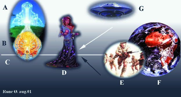 Så hverken stoff eller energi er annet enn fenomener, som nødvendigvis skal til i et betinget univers. Alt blir frembragt og forandret i vekselvirkningen mellom opprinnelig rom og deformert rom, og den elektriske ild - Viljen - i nesten talløse grader og kombinasjoner. I det levende Univers er det fremkommet en mengde hierarkier, ordener og grupper av vesener - kjente og ukjente for oss. Hver med sine funksjoner i den store sammenheng. Man har fra gammel tid forskjellig utformede modeller til å gi en ide om de styrende krefter eller arketyper, som f.eks. Kabbala`ens Sefiroh -livstre. Faktum er at det strekker seg en kjede av vesener fra de største til de mikroskopiske på utviklingsstigen. I alt levende er det en streben etter høyere bevissthet, mer opplevelse og identifisering. Alle former er uttrykksmåter for bevisstheter, som virker igjennom dem i avmålte perioder for å oppfylle hensikter. Selv om det alltid er en som er større - toppens topp blir aldri nådd - må det sies at det er En Høyeste Ånd som gjennomtrenger alt. Men det finnes f. eks. skaperguder på mange, ja alle trinn. Mindre guder og deres manifestasjoner utgjør sentere eller celler i større guders skapelser: "Vet dere ikke at dere alle er guder?" Selv små naturånder som hjelper med å bygge små planter, er guder. Især for plantene.