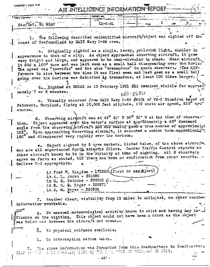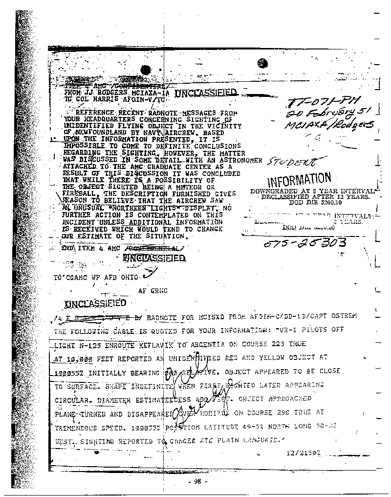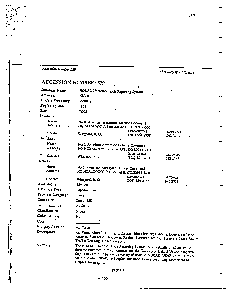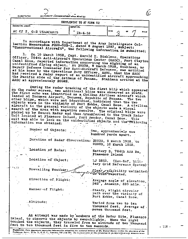 *9.0 APPENDIX AI. UNITED STATES GOVERNMENT DOCUMENTS RELATED TO UFOs