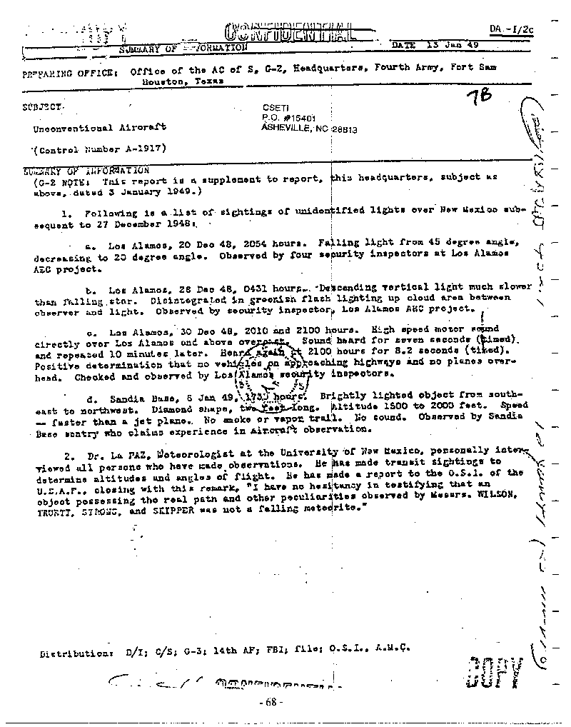 This summary is focusing on the testimony of important first-hand witnesses. We have thousands of government documents, hundreds of photographs, trace landing cases and more, but it is impossible to include them in a summary of this length. These materials will be made available for any serious scientific or Congressional inquiry.