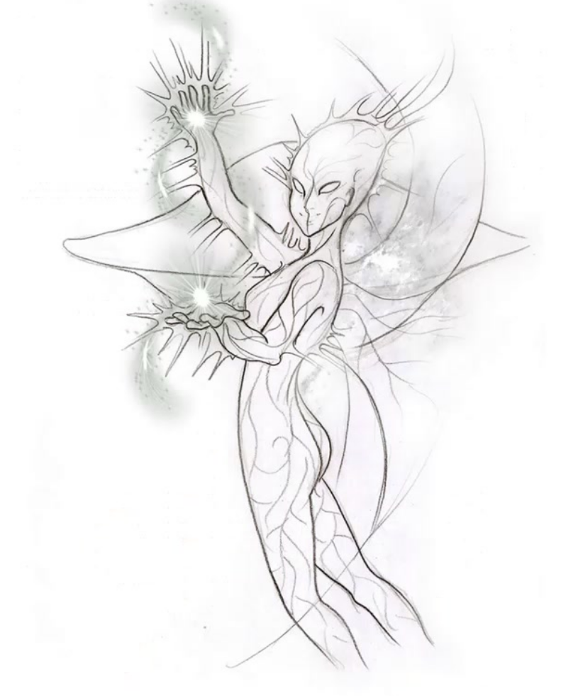 interdimensional consciousness resonance. Their structure is humanoid based but purely etheric. There are very few races in this galaxy who have reached such levels of evolution and the N'Torii are one of them. If I mention them to you it is because they brought their attention to your planet, in the desire to help the forces of light and evolution. We sometimes work with them and I saw one of them, once, it was a life experience i will always remember. They manifest as a bright light with filaments of etheric substance dancing around a barely, blinding bright, tall humanoid body. You cannot see the features on their faces but i was