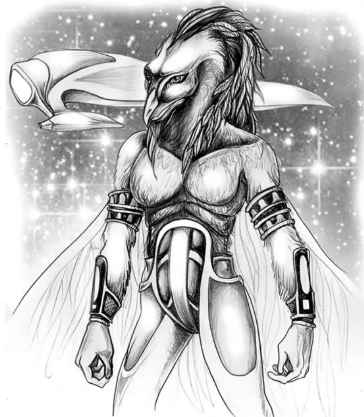 character to them. They are tall humanoids with bird genetics and features, such as a duvet covered skin, a crest