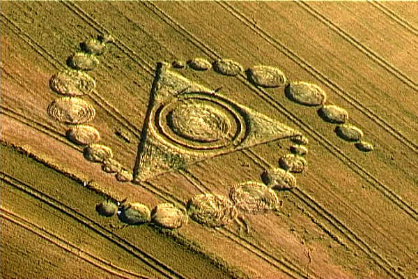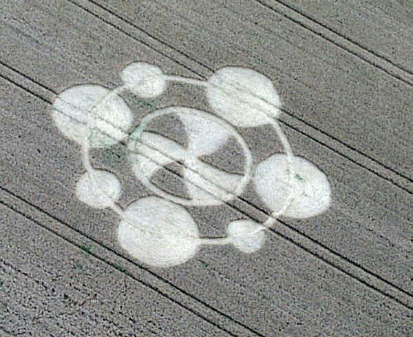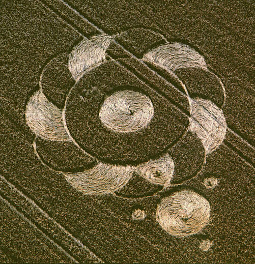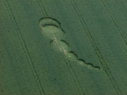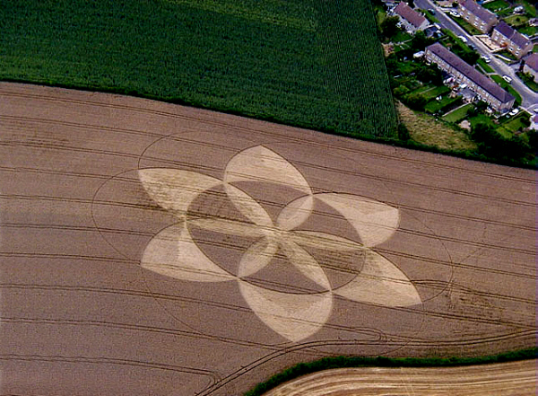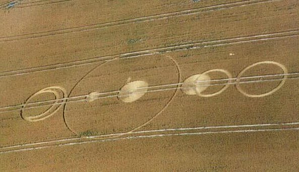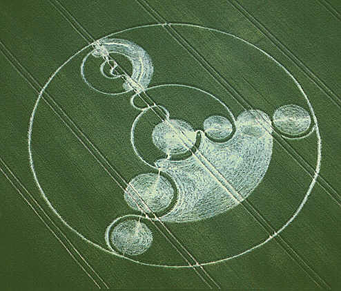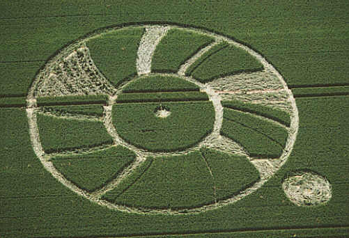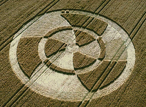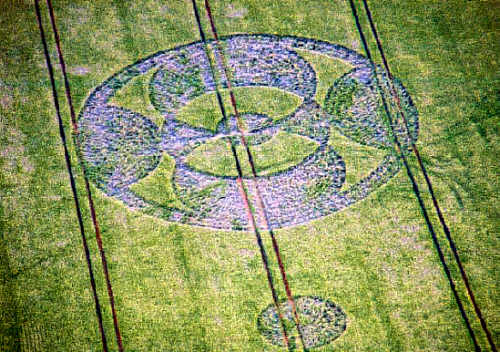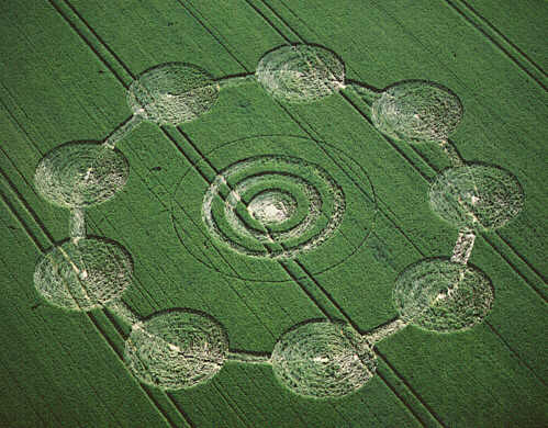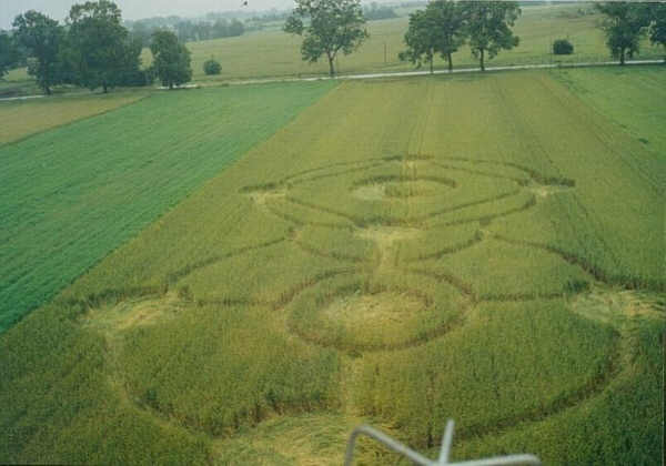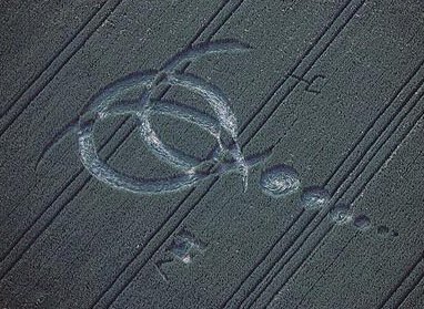 This pictures shows marks in cornfields generated by aliens using interdimensional technology.