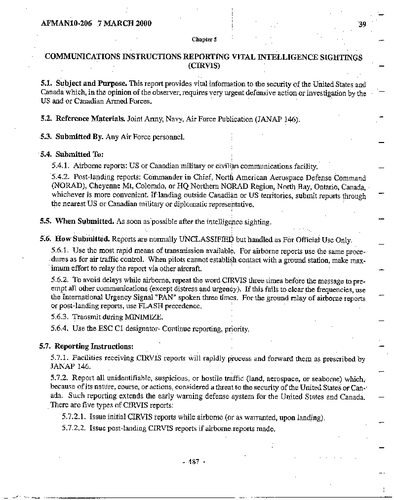 *9.0 APPENDIX AI. UNITED STATES GOVERNMENT DOCUMENTS RELATED TO UFOs