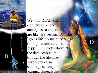 Disse budskaper befordres ved hjelp av "Sølvtråden"= forbinder menneskelegemet med dets OVER-SELV.