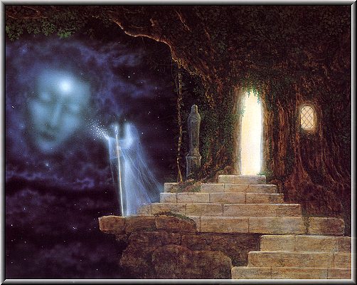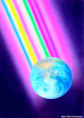 Om englene De ritualer som vi anvendte, var fremmede for folket på den tiden. Vår evne til å vise oss og forsvinne etter behov - gjennom å øke eller minske vår vibrasjonelle frekvens - mystifiserte dem. De fastslo at vi måtte være overnaturlige vesener av noe slag og kalte oss "engler". de vakre "besøkende" fra høyere verdener med evner til å gjøre det som folk dengang (og enda idag) ikke forsto - førte til at de ble sett på som overnaturlige og "engler" som jf. Martinus er en benevnelse på vesener som kan "ferdes" på mange eksistensplan.(Bildene her igjen er malt av den fantastiske visjonære kunstner Gilbert Williams)