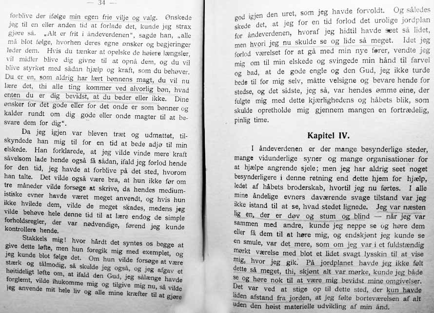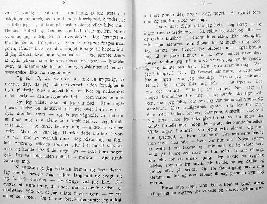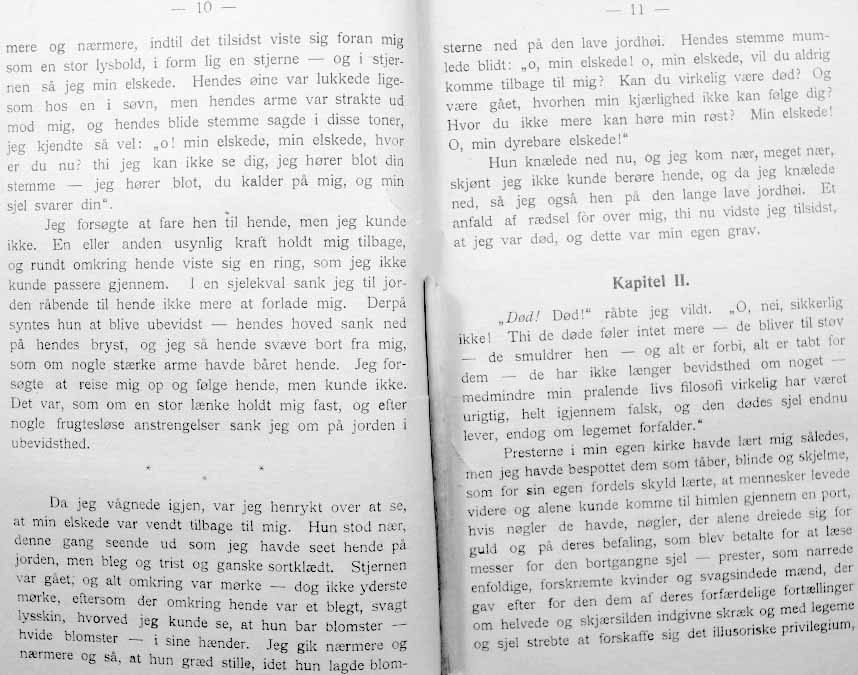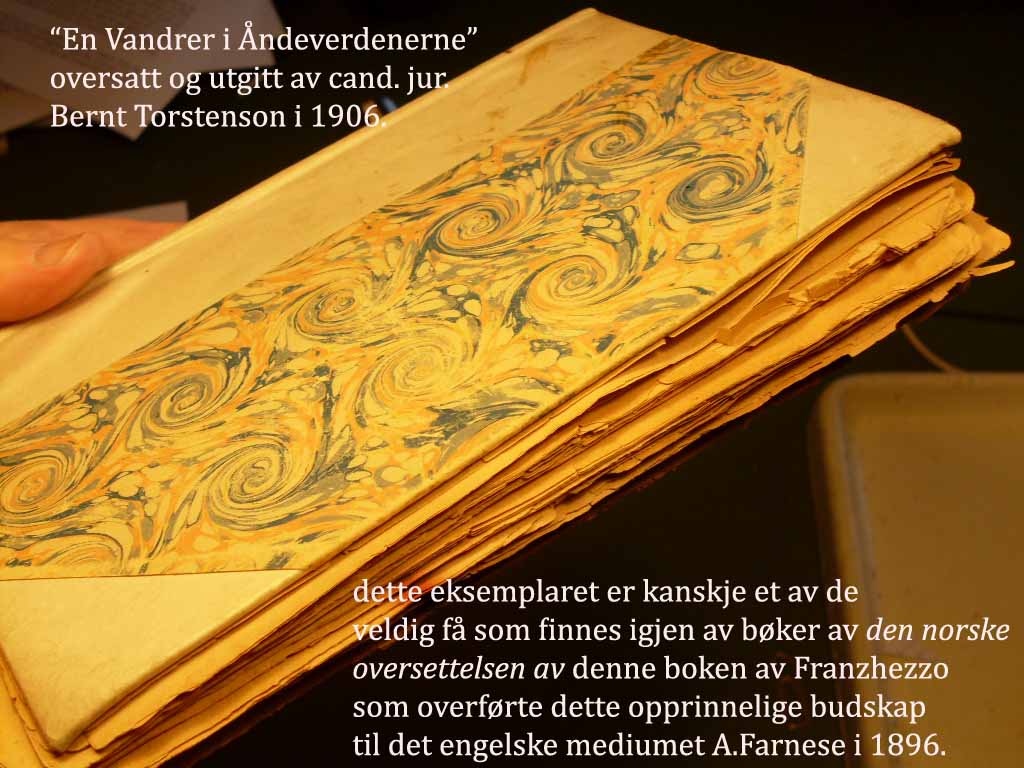 EN VANDRER I ÅNDEVERDENERNE - er oversatt og utgitt av cand. jur. Bernt Torstenson og muligvis brukte den danske oversetter av denne under, nettopp Torstensons oversettelse som grunnlag- da det jo er ganske minimalt som skiller de to språk, slik de var for hundre år siden.