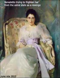 Denne mann, (jeg vil bruke hans navn i den åndelige verden: Benedetto, ettersom hans jordiske navn helst bør glemmes) syntes å være blitt hurtig berømt etter at vi hadde kjent hverandre. Og han hadde i høy grad vært heldig med å selge sine malerier. Men Italia er ikke noe rikt land, og Benedettos rikeste finansierer, var englendere og amerikanere, som kom for å besøke Venezia. I huset hos en av dem møtte Benedetto den kvinnen, som skulle formørke hans liv med sin fordervende innflytelse. Han var ung og vakker, talentfull, høyt kultivert og av en gammel, ansett familie, som dog samtidig var meget fattig. Men Benedetto ble mottatt av det beste selskap i Venezia, og det var til en kvinne på det høyeste trinn av den sosiale stige at Benedetto tapte sitt hjerte, og i sin ungdommelige og romantiske tåpelighet drømte om at hun ville være tilfreds med å bli hustru til en kjempende kunstnerspire, som intet eide utover sitt talent og sitt voksende ry.