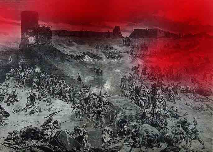 Det var langs slagmarken en dyp kløft; her ble beseirede kastet ned og holdt fanget.