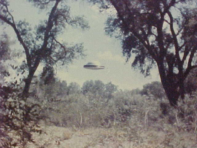 In photo number 5 the spaceship is seen between tree trunks. It hovered in that vicinity for some time. The "ports" around the outer edge of the rim are a part of the propulsion system. No jets or rockets of any kind are employed. The "ports" are never used or left unsealed outside the planet's atmosphere where the magnetic lines of force are further apart, but are hermetically sealed either manually or automatically before leaving a planetary atmosphere. Hermetic sealing is accomplished by removing all force on substances from the basic elements of the parent metals, and a device is used to charge both surfaces to be sealed either positively or negatively, depending on how a certain metal is naturally charged. The sealing of two or more metals cannot be accomplished unless they are first neutralized and then are all charged with the same polarity. The carbon elements, however, being anphoteric combine equally well with positively or negatively charged elements.