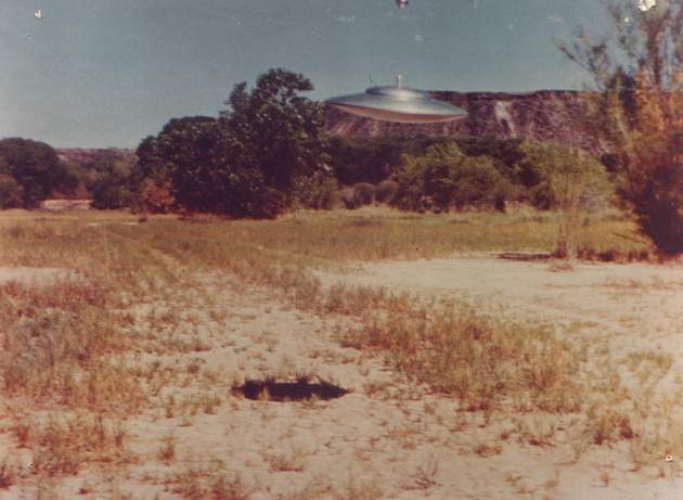 Paul Villa's second set of UFO photographs was also taken coincident with a face-to-face meeting with the UFOnauts on the ground. This time he was telepathically directed to a different area, about 20 miles due south of Albuquerque, close to the bed of the Rio Grande River which flows there, when an immense disc-shaped craft appeared. It was Faster Sunday the 18th of April 1965 and about 16:00 in the afternoon when he arrived on scene.