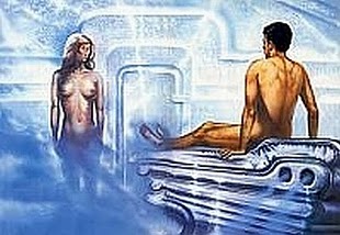 The SuccubusBoas says he was left alone for about an hour and made himself comfortable on a large, featureless foam rubber-like gray bed or couch in the middle of the room, with no legs. From holes in the wall from about the height of his head came tufts of gray smoke that quickly dissolved. At first, Boas felt nauseated and as though he was being suffocated. Then he rushed to one corner of the room, vomited, and after that his breathing was easier. A little while later a door opened and in walked a naked woman! Ralph Blum:"Villas Boas speculated that the clear liquid was an aphrodisiac; to my mind the 'logic' of the story suggests that it was a germicide of some kind; and that the 'smoke' was a chemical that permitted the alien to breathe without her helmet (the rest of the crew wore helmets throughout the encounter). It could be that the blood was relevant to some criteria of interbreeding." "She came in slowly, unhurriedly, perhaps a little amused at the amazement she saw written on my face. I starred, open-mouthed ... she was beautiful, though of a different type of beauty compared with that of the women I have known. Her hair was blonde, nearly white (like hair dyed in peroxide)—it was smooth, not very thick, with a part in the center and she had big blue eyes, rather longer than round, for they slanted outward, like those pencil-drawn girls made to look like Arabian princesses, that look as if they were slit ... except that they were natural; there was no makeup. Her nose was straight, not pointed, not turned-up, nor too big. The contour of her face was different, though, because she had very high, prominent cheekbones that made her face narrowed to a peak, so that all of a sudden it ended in a pointed chin, which gave the lower part of her face a very pointed look. Her lips were very thin, nearly invisible in fact. Her ears, which I only saw later, were small and did not seem different from ordinary ears. Her high cheekbones gave one the impression that there was a broken bone somewhere underneath, but as I discovered later, they were soft and fleshy to the touch, so they did not seem to made of bone. Her body was much more beautiful than any I had ever seen before. It was slim, and her breasts stood up high and well-separated. Her waistline was thin, her belly flat, her hips well-developed, and her thighs were large. Her feet were small, her hands long and narrow. Her fingers and nails were normal. She was much shorter than I am, her head only reached my shoulder ... Her skin was white (as that of our fair woman here) and she was full of freckles on her arms. I didn't notice any perfume ... except for a natural female odor ... And another thing I noticed was the hair in her armpits was bright red, nearly the color of blood." Bruce Rux points out that "a later recounting of Boas's story included the mention that her pubic hair was also bright red, which may have omitted from the original publication of Boas' encounter due to the sexual mores of the time. Details of his encounter which followed were not published either, but apparently he did discuss them—albeit with some embarrassment—when relating his story to Dr. Fontes and Mr. Martins."